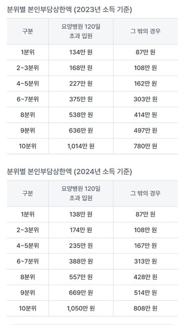 의료비 환급의 경우, 본인의 건강보험료를 기준으로 분위가 나눠지고, 분위별 본인부담상한액이 정해져 있는데요. 상한액보다 의료비를 더 지출했다면 차액을 환급받을 수 있어요. 나도 대상자인지 확인 후 환급 신청해보세요.