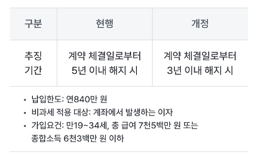 청년들의 자산 형성을 돕기 위해 시행 중인 청년도약계좌는 가입 후 5년이 지나야 비과세 혜택을 받을 수 있었으나, 이번 개정안을 통해 3년으로 완화되었습니다. 따라서 청년들이 보다 쉽게 계좌를 유지하고 혜택을 누릴 수 있도록 하여, 현실적인 경제적 부담을 덜어주게 됩니다.