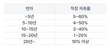앞서 부채를 줄이자고 강조했는데 이자 외에 원금을 갚는 것은 모두 저축과 동일하게 간주될 수 있다. 소득이 높아져도 오히려 저축률은 높아지기 어렵기 때문에 초반에 저축률을 높여야만 한다. 저축이란 개인의 소득이나 여러 상황에 따라 달라지겠지만 필자가 생각하는 가이드를 말하자면 다음과 같다.